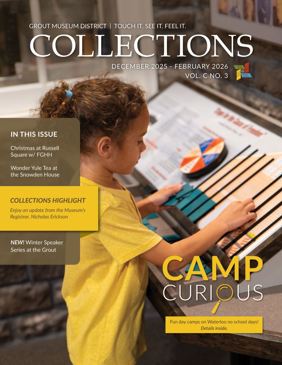 The Grout Museum District's Newsletter, "Collections," is published quarterly and includes information regarding upcoming programming, exhibits, membership specials, and more.